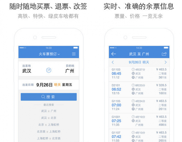 【退票改签】随时随地在线购买火车票、退票、改签;