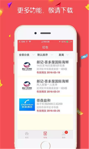 可筛选不同类型的优惠卷,如美食,手机等。