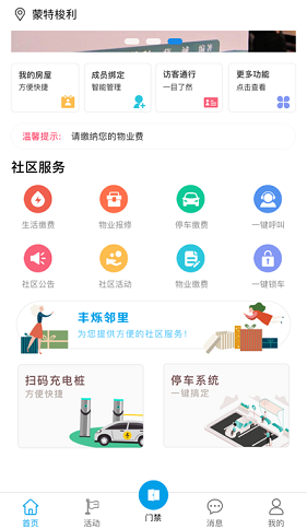 丰烁邻里app提供在线缴纳物业费、停车费、汽车自动续费、在线物业报修、访客放行、一键锁车、社区便民服务等客户服务功能,方便打造更加私密安全的社区空间。