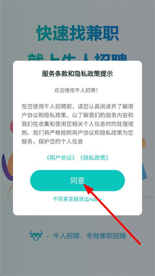 1、在隐私政策提示弹窗中,点击同意,进入登录页面。