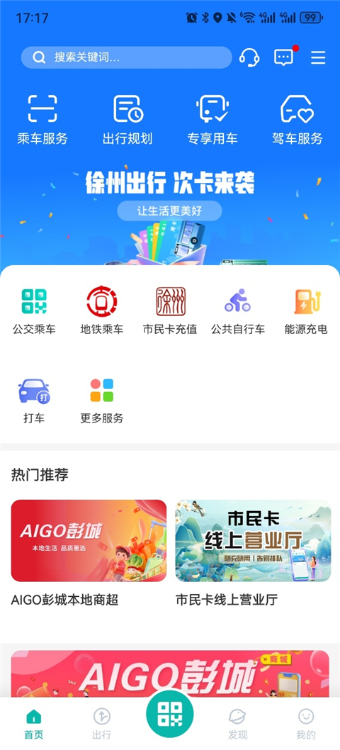 徐州出行App是一款专为徐州本地市民打造的一站式智慧出行服务平台,它立足公交、停车出行核心服务场景,整合了地铁、出租、包车、景点门票及周边生活服务,为市民提供多样、便捷的智慧出行体验。徐州出行App内置二维码乘车功能,市民只需要开通服务即可轻松乘坐公交车、地铁。