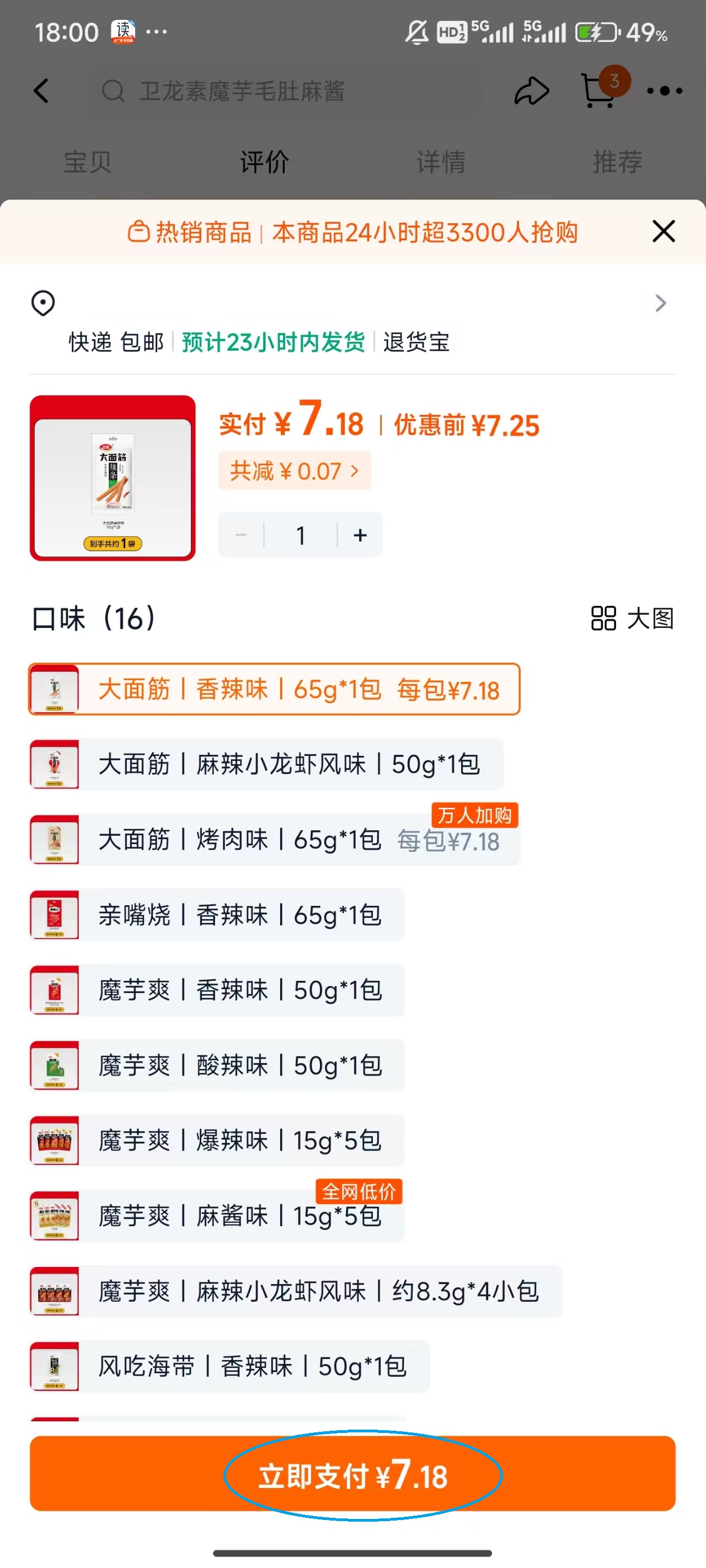 6、选择自己喜欢口味后,点击屏幕下方的“立即支付”,就完成了商品的购买。