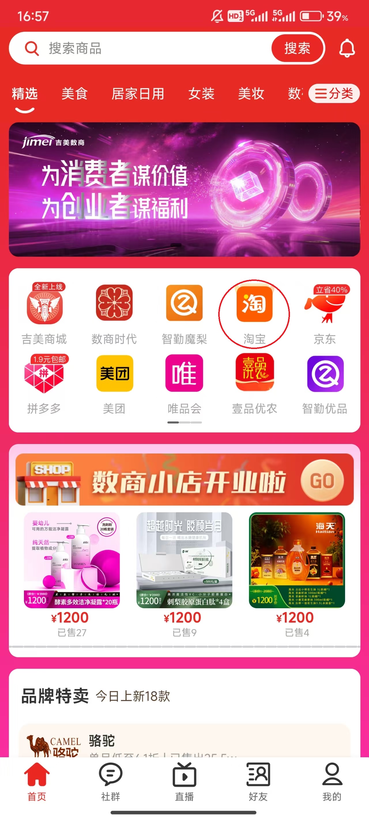 吉美数商App怎么领券并在淘宝购物