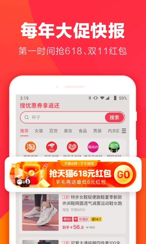 1、购物之前搜一搜,淘宝优惠券轻松享,省钱又省心;