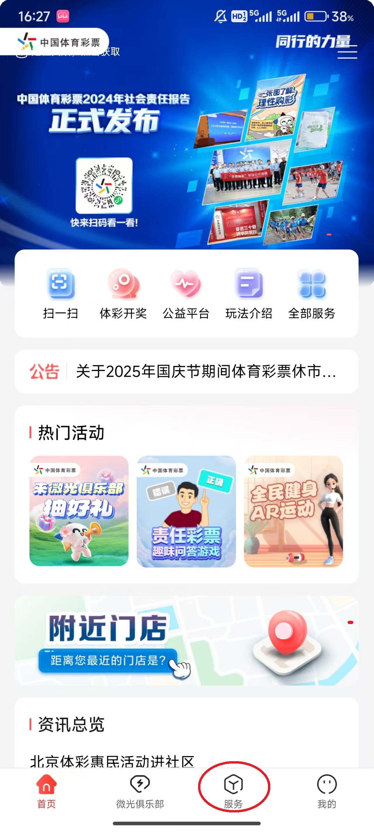 1、点击屏幕下方的“服务”。