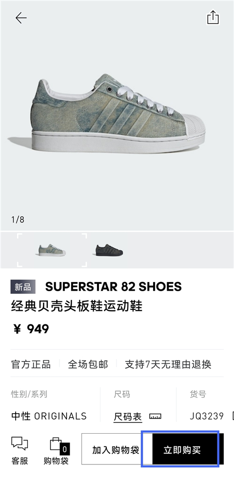 购买 SAMBA、NMD、Superstar和Ultraboost等运动鞋产品