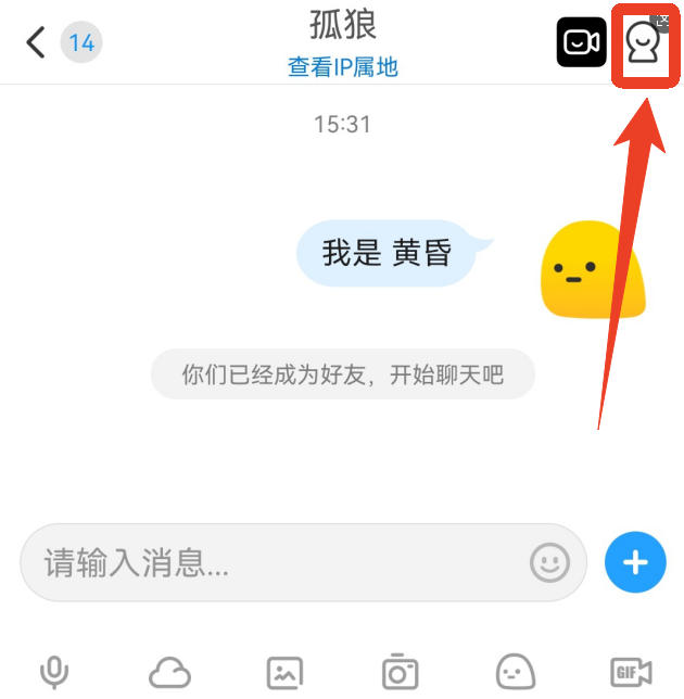 1、在好友的聊天界面,点击右上角的小人图标。