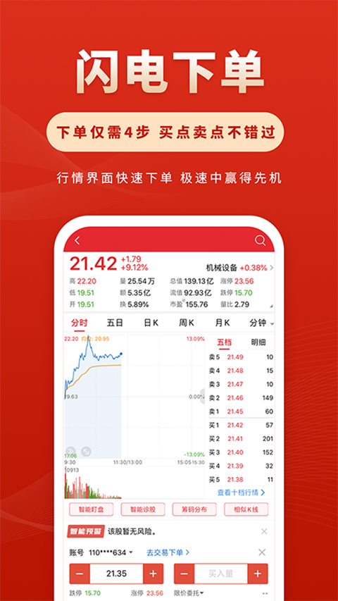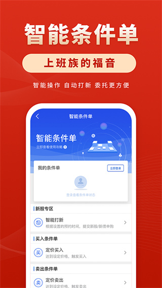 3、手机交易:新股申购,港股通,融资融券交易业务全支持,一键打新,简单操作,快速上手,带给你不一样的交易体验。
