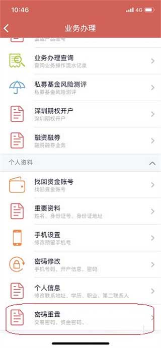 4、掌上营业厅:新增创业板转签,变更三方存管银行,找回资金账号、证券账户下挂等业务,线下业务线上办理一应俱全,和营业部排队说Bye Bye。