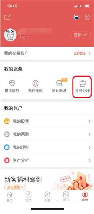 3、业务办理:创业板转签、变更三方存管银行,找回资金账号等20余项业务线上快捷办理,和营业部排队说ByeBye。