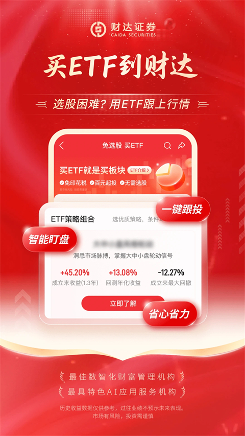 财达股市通app是财达证券股份有限公司专为股票基金投资者量身打造的一款金融服务应用。通过财达股市通,用户可以轻松获取最新的金融资讯,实时掌握热门股票和基金产品动态。这款应用支持手机开户,让投资者无需繁琐的手续即可开始投资。除此之外,财达股市通还拥有闪电下单功能,让投资者能够快速进行交易,抓住投资机会。更为重要的是,财达股市通还提供智能选股功能,帮助投资者梳理市场,精准把握投资机会,助力投资者实现财富增长。无论您是新手投资者还是资深股民,财达股市通都能为您提供全方位的投资服务,助您在股市中游刃有余,赢在投资起点。