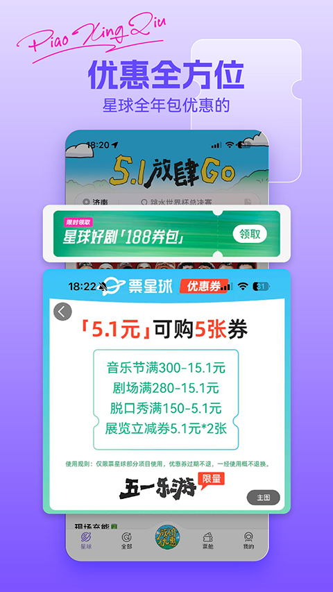票星球买票是一款购票软件。该软件拥有各类热门活动的门票,还能享受到独家的优惠券,让您的购票体验更加便宜和愉快。无论您是狂热的音乐爱好者、戏剧迷,还是体育赛事的忠实粉丝,票星球都为您提供了一站式的门票购买服务。