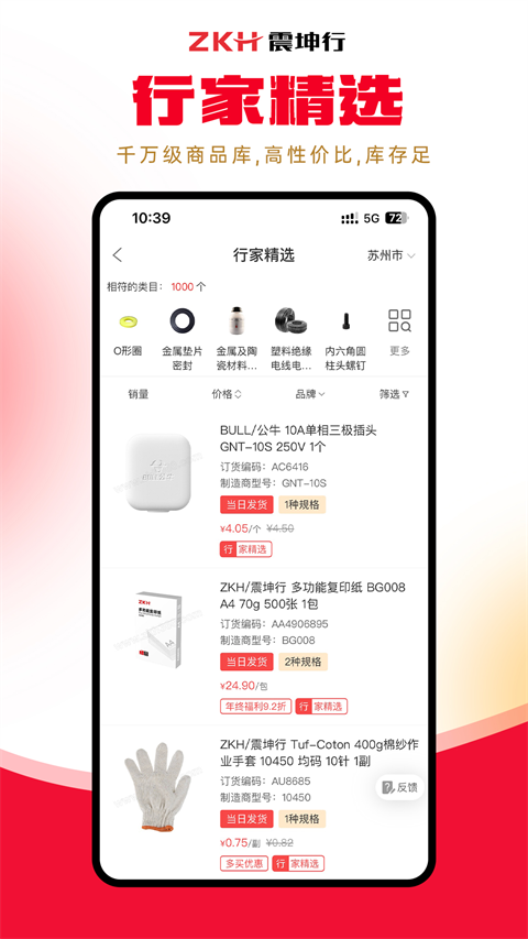 震坤行app是国内一款的工业用品采购服务平台。其中从产品上来看,平台就提供了包括数百万种工厂使用的辅料和易耗品(MRO)供大家选购,而在其中主要经营的内容则是有化学品、个人安防、手工具、金属加工、紧固件、仪器仪表等28条产线内容。