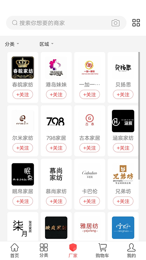 5、打开关注列表,在此可以找到千家以上的家访品牌商家;