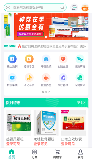 终端采购用户可通过云采医药平台随时随地快速采购下单。高毛产品、控销药、新特药,医疗器械等,数万品类品规,满足不同客户需求;多样化优惠活动,降低采购成本;订单详情、物流信息、平台动态实时掌握,提高采购效率。