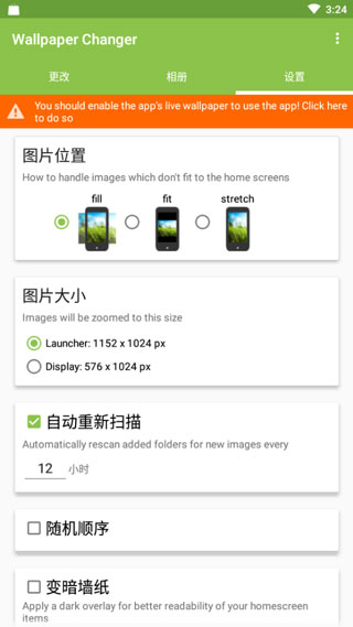 1、动态壁纸支持;2、定时、屏幕解锁或通过自定义小部件更换壁纸;