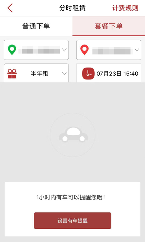 1、用车租赁,选择租赁的类型即可迅速填写使用的时间;