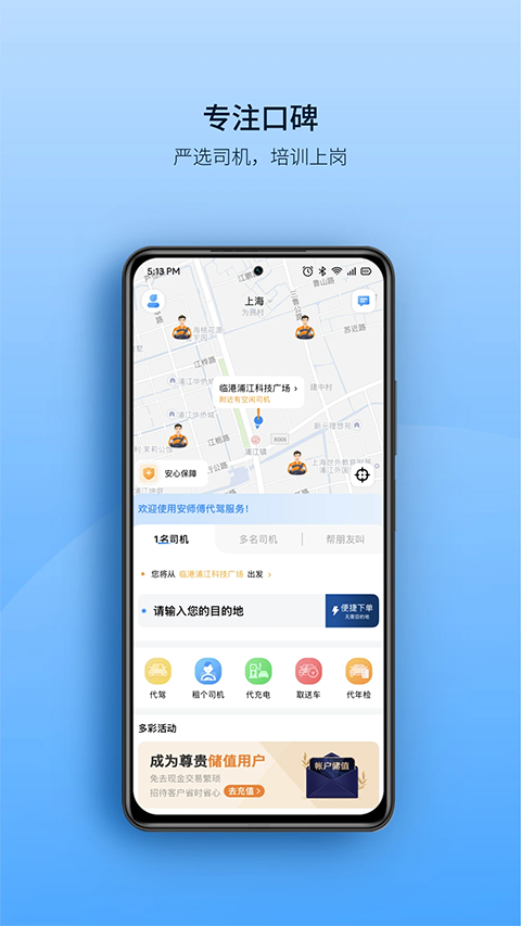 安师傅以酒后代驾服务为主,收费合理,服务规范,基于GPS定位更可随叫随到,无须预约。