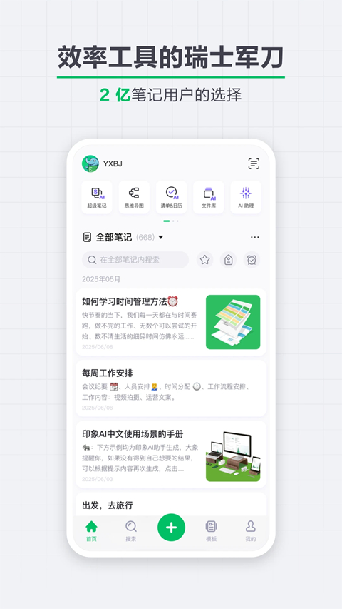 * 一键应用笔记模板,提高记录效率