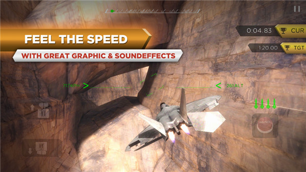 - 模拟极限飞行游戏拥有多达五部完全不同的强大战机,每一部都有不一样的性能表现- 按照你的方式去作战! 可以选择重力感应或者虚拟摇杆操纵