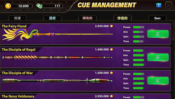 6、50多种经典、独特、史诗般的传奇球杆:定制您的球杆和球台,获得与球对手比赛的优势令获得免费的台球硬币并每天中奖!