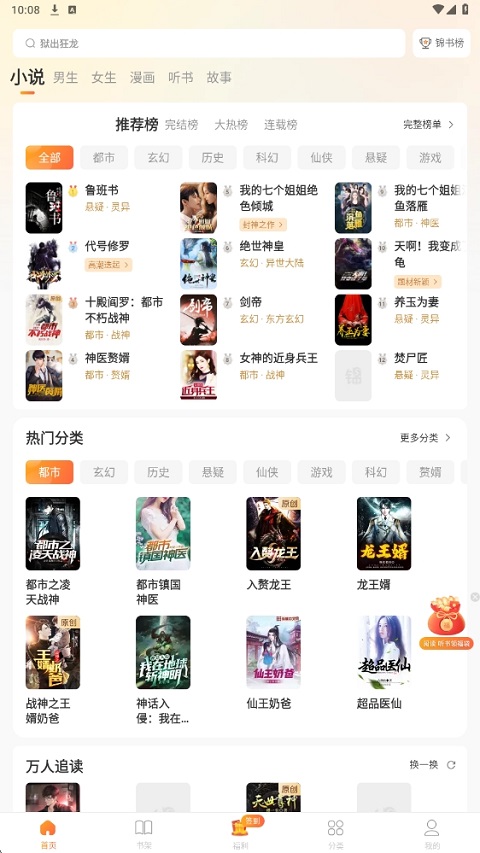 2、【个性化推荐】根据你的阅读习惯,给你推荐更多你感兴趣的小说;