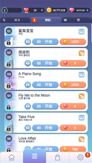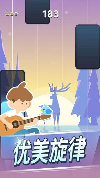 1、高品质的吉他和钢琴音效可以使玩家轻松愉快地继续游戏的关卡,以获得游戏奖励2、柔和敏捷的声音响应速度要求播放器始终保持高度关注,并且其中很多歌曲都很流行