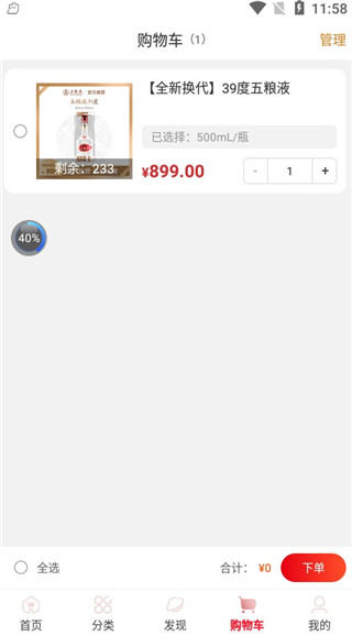 3、进入购物车页面 ,大家可以将自己喜欢的酒添加到购物车里