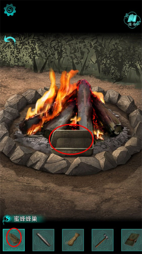 17、把【铁盒】放到火堆旁,再把【蜜蜂蜂巢】放入铁盒中熔化,获得【蜜蜡】