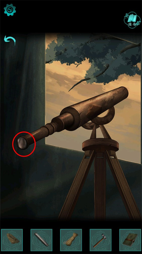 6、(帐篷内)点击木箱,获得【登山绳】和【凿子】(注意看箱子上的刻痕)