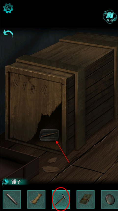 15、点击木箱,用【锤子】砸开,获得【筷子】和【饭盒】
