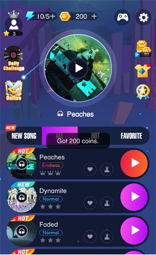 另外,在节奏大师小游戏中有着各种各样的音乐曲目,玩家可以点击屏幕享受不同音乐带来的不同节奏旋律。在游戏的过程中玩家将移动这小球接着一个个音乐精灵,而这些精灵则是我们获得分数的关键,当然除了音乐精灵,还有星星和蛋糕,但是这两个的出现还是比较少的,当我们以三星通过游戏时,那么就可以获得大量的奖励啦!而这些奖励就可以购买各种曲目。整体来说节奏大师这款小游戏控制难度不大,主要在于反应能力,玩起来还是非常不错的哦!喜欢的朋友可以下载试试。