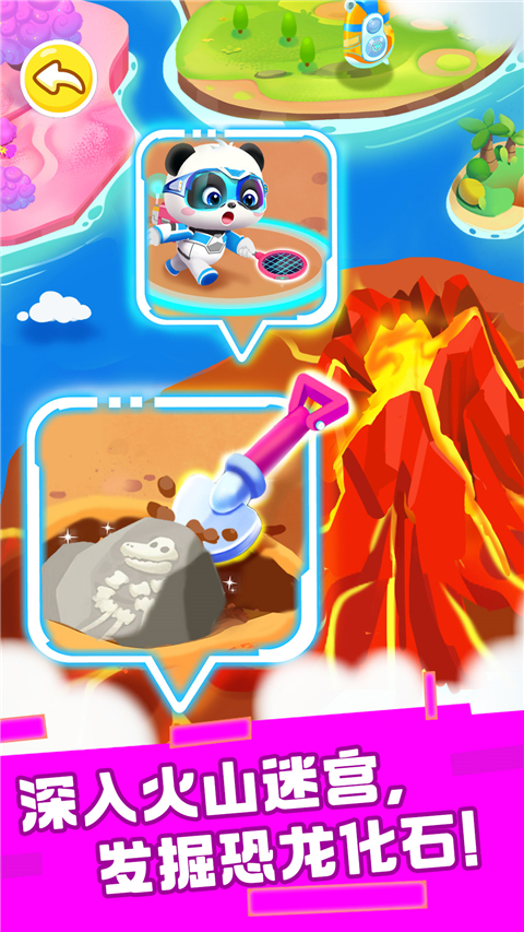 哇,奇妙救援队又有新发现:集齐恐龙化石,竟然能复活恐龙同伴!宝宝快深入火山,开启雷达定位,找到藏有化石的小裂缝,用铲子挖出它。