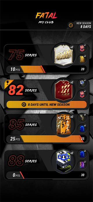使用您自己收藏的卡片参加八个评级系列赛,每个系列都有不同的最高评级要求,随时随地改进和改变您的团队,每周都有新奖励。