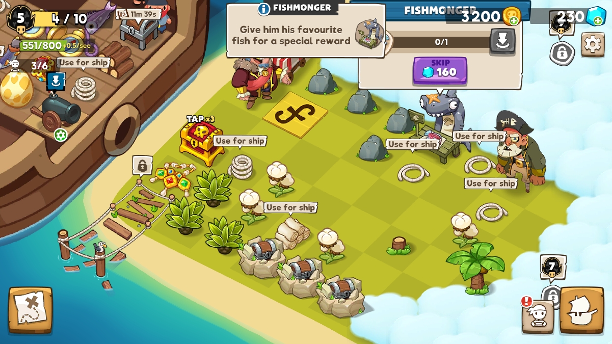 发现岛屿:探索未知岛屿,寻找隐藏的宝藏和任务。