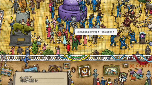 3、一定会有一个蓝色衣服的邮差提供线索,剩下的都在一些可以互动的道具里,每一关还有一个歌女唱歌,歌词也很有趣。