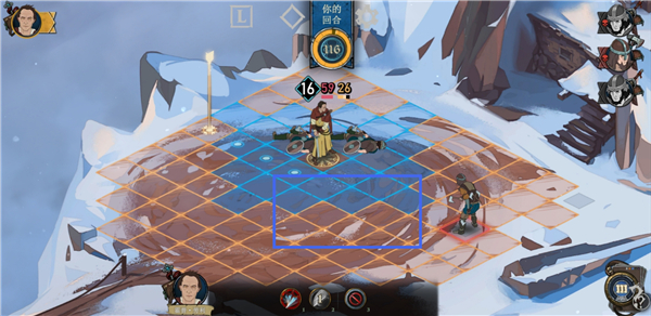 1、游戏中蓝色格子表示你的人物在当前回合能够移动的范围。橙色格子表示额外移动距离,但你的人物必须耗费一定的精力才能移动到那里。