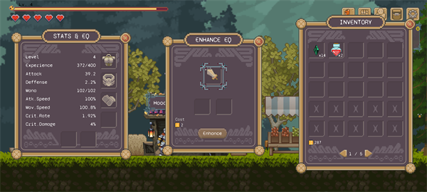 黑暗之刃是一款 2D 横版单人像素风角色扮演游戏,其战斗机制与资源管理系统借鉴了魂系列的核心框架。游戏采用线性关卡设计,每个区域包含隐藏路径与多重解谜要素。