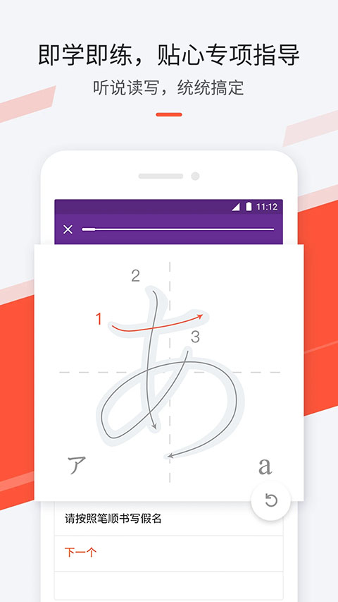 专为零基础学员打造的的日语学习任务系统,是你随身的日语老师,知识讲解、单词背诵、练习测试、总结复习,带着你一步一个脚印的学好日语。