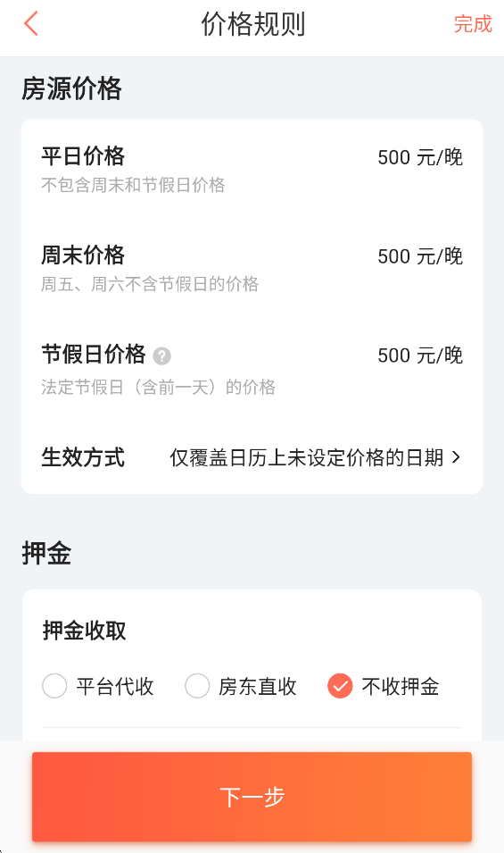 5、之后选择床型、宜住人数、能否额外加床,继续点击下一步。