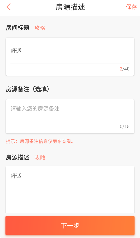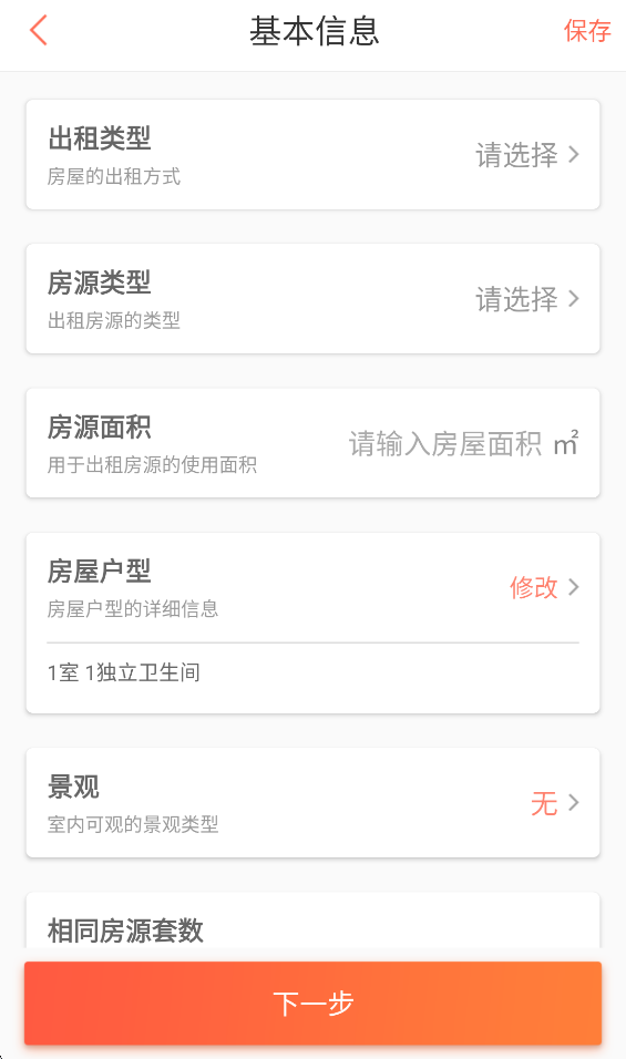 4、选择你的出租类型、房源类型、房源面积、房屋户型等等。