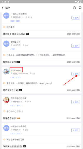 -「加入结伴」,系统将自动匹配yogi,和你一起组成小分队,一起练习,互相监督,互相鼓励~