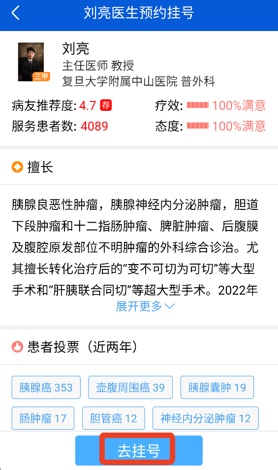 5、找到你想挂号的医生点击后,会有更加详细的信息,之后点击下方的【去挂号】。