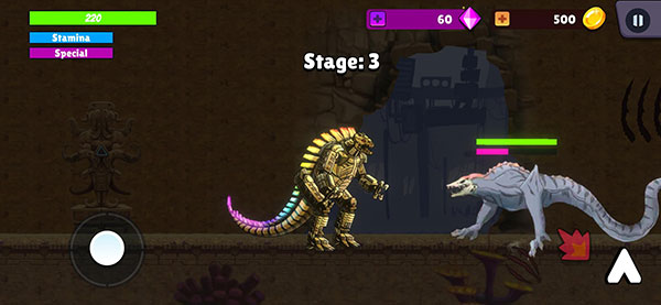 3、简单的操作模式,玩家将操控自己的怪兽释放各种技能而且还有躲避对手的技能,完成打败对手的任务。