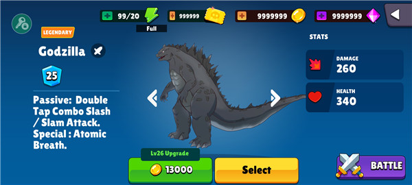 2、多种角色任意选择,你想要的哥斯拉、金刚这里都有,还有你意想不到的角色;
