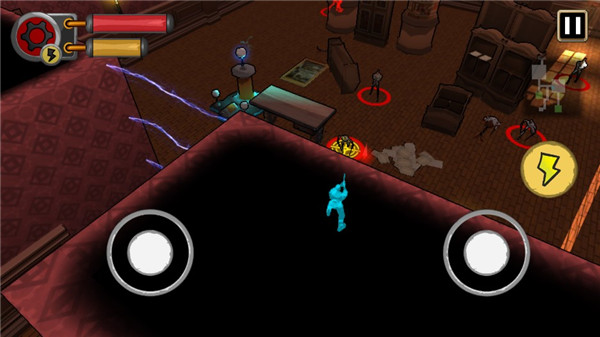 2、左边的轮盘控制方向,右边的轮盘控制攻击方向,点击【闪电】释放技能。
