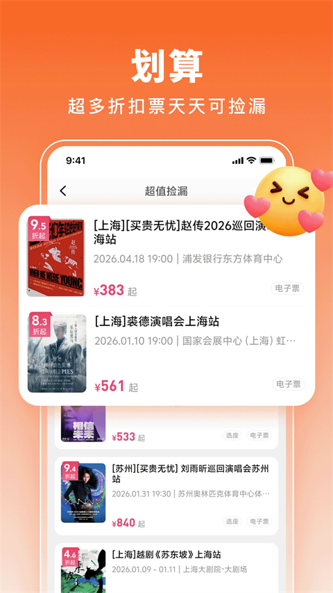 演唱会、音乐节、话剧、脱口秀...你想看的演出全都有,超值折扣尽享低价。