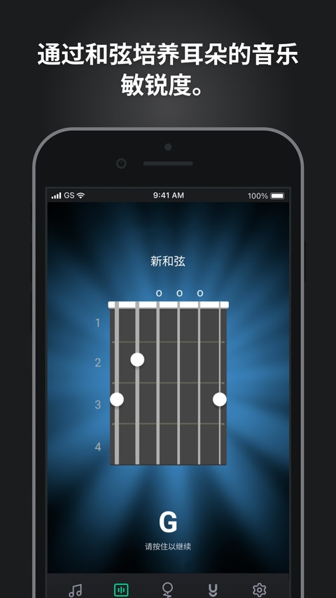 GuitarTuna吉他调音器APP内置多种和弦图,初学者 可在此学习和弦,并跟着图谱练习,软件还设计了一个和弦小游戏,用户将通过耳朵来识别各种和弦,在游玩的过程中也能不断加深和弦的相关知识。