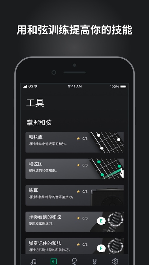 学习、实践并掌握吉他和弦,并学会用耳朵来识别各种弦。