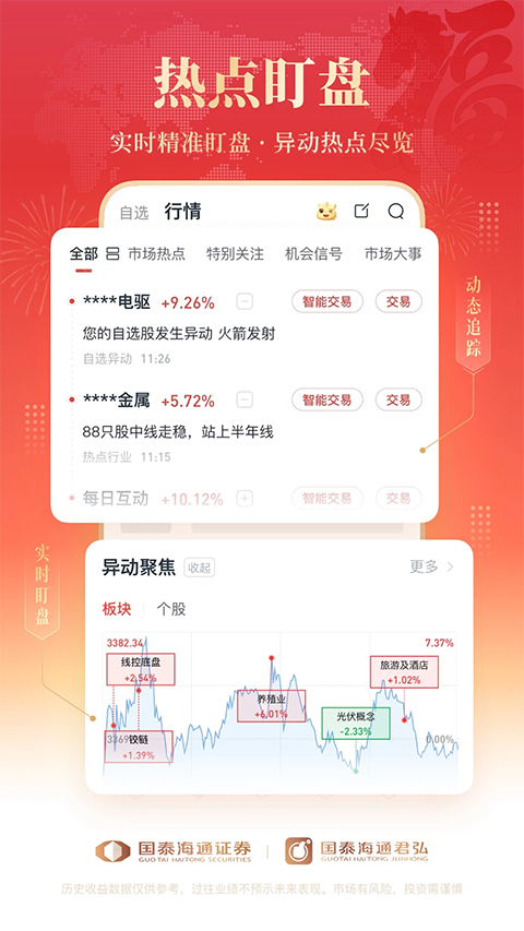 国泰证券app是一款集行情、分析、交易、资讯于一体的专业证劵信息服务软件。主要由国泰海通证券股份有限公司全新升级优化上线,不仅具备了更为清爽直观的UI界面、功能的新增,以及基于互联网络数据传输功能,来实现得用手机进行股票信息查询和交易的新一代无线应用系统,从而可为每一位理财用户带来了更专业更便捷的服务,让大家不但可在这里轻松获取到有关于股票、基金最新、最热门的市场行情分析资讯、看直播,关注各种证券动态等。